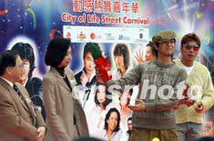 香港演藝界明星許志安、何韻詩與甘國亮,12月13日出席香港旅游協會舉辦的繽紛冬日節宣傳活動時,介紹將在20日舉行的“動感熱舞嘉年華”。洪少葵 攝