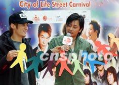香港明星王杰與余文樂,12月13日在金紫荊廣場宣傳“動感熱舞嘉年華”。洪少葵 攝