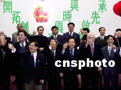 紐約中國和平統(tǒng)一促進(jìn)會(huì)十二月十五日舉行中共十六大成果圖片展。圖為中國駐紐約總領(lǐng)事張宏喜和紐約中國和平統(tǒng)一促進(jìn)會(huì)會(huì)長花俊雄、紐約華人社團(tuán)聯(lián)合總會(huì)主席梁冠軍等紐約僑界人士在展覽開幕式上共同舉杯,祝愿中國國運(yùn)昌盛、明天更好。趙海燕 攝