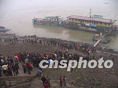 圖為撞船地點附近眾多群眾圍觀。 雷鳴 攝