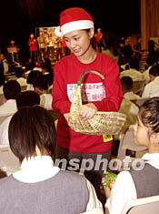 歌星陳冠希、人氣偶像Twins、鄭希怡及商臺DJ12月19日到香港薄扶林道心光盲人學校探訪。鄧慶樂 攝