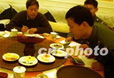 解放軍駐北京某部隊二十日請地方名廚師傳授烹飪技術并為戰士的飯菜打分,以提高官兵的伙食質量。作者:宋吉河