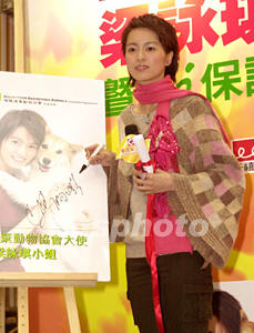 歌星梁詠琪12月24日在香港出席保護遺棄動物協會大使委任典禮。梁詠琪在簽名儀式后,正式成為保護遺棄動物協會大使,協助該會宣傳愛護動物的信息。大會安排梁詠琪與及其歌迷舉行拍照會,令在場充滿歡欣氣氛。鄧慶樂 攝