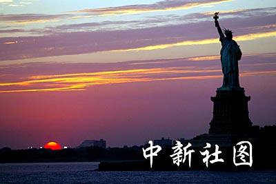 9月10日(美國紐約時間),落日下的美國自由女神像。王瑤 攝