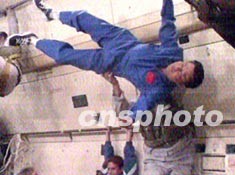 中國“神舟”四號飛船五日晚在內蒙古中部預定區域著陸,順利完成中國載人航天工程第四次飛行試驗。圖為即將實現太空夢的中國第一批宇航員進行無重力訓練。作者:中新社