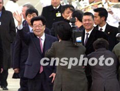 應澳門特區政府的邀請,全國政協主席李瑞環七日到達澳門特區進行訪問。 中新社傳真 李剛 攝