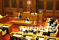 香港立法會(huì)議員1月9日出席立法會(huì)會(huì)議,就行政長(zhǎng)官董建華的施政報(bào)告提出問(wèn)題。洪少葵 攝