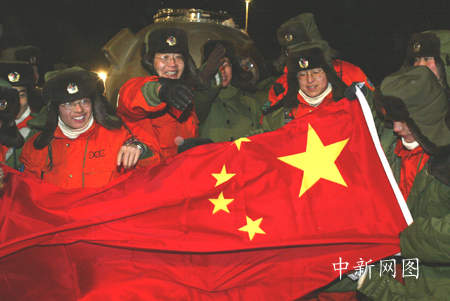 2003年1月5日,返回艙成功著陸,著陸場內一片歡騰景象。孫陽 攝