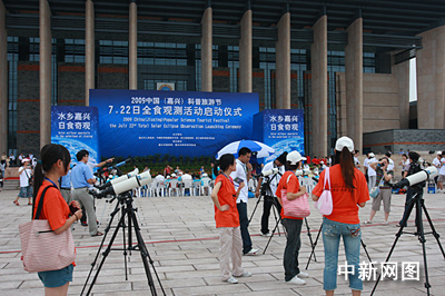 - 中新網蘇州記者報道:2009-7-22 09:17中新網蘇州七月二十二日電(記者 趙龍 周建琳)今天早上六時起太陽就和蘇州捉起了迷藏,它一會出來一會兒又躲藏起來,天空時晴時雨,惹得蘇州上方山上森林公園內的天文學愛好者又喜又悲。