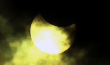 8時45分,天空出現大量薄云。伴隨云層越來越厚,天空變暗時,西北師大符彥飆博士說,有薄云和空氣的輕度污染,觀測相切不是很明顯;9時15分時,從蘭州可觀測到食甚,月球遮住太陽光面積達到最多,太陽“缺掉”80%。 有云層不失為一件好事,一童聲驚呼:“月亮”!透過厚厚的白云,此時用普通的觀測儀器,只能看見天空一片黑,用肉眼觀看是最好不過的了,符彥飆風趣道,“白天的月亮”。據符彥飆介紹,蘭州出現日偏食是在8時11分上演,持續了2個小時13分。完