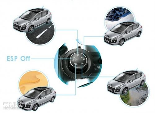 標(biāo)致3008還有一個(gè)值得一提的功能就是抓地力控制系統(tǒng);其由一個(gè)先進(jìn)的牽引力控制系統(tǒng)和特殊的泥/雪輪胎,通過自動調(diào)節(jié)前輪的牽引力輸出方式和功率來達(dá)到對應(yīng)的效率。標(biāo)致的這套系統(tǒng)通過人工來進(jìn)行切換,其一共有五個(gè)控制檔位:標(biāo)準(zhǔn)、雪地、越野(泥地、爛路、濕滑草地)、沙石地和關(guān)閉;通過調(diào)節(jié)不同的檔位來適應(yīng)不同的路面情況。