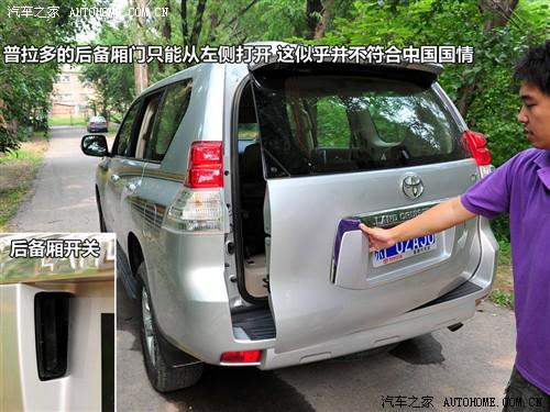 少了懸掛式備胎的尾門輕松了許多,不過這也讓車尾少了越野車的那種野性。左側開啟的尾門沒有改變,這種方式顯然更適合靠左行車的國家。普拉多自動豪華版帶有倒車影像系統,在倒車時可以將拍到的畫面直接顯示在中控的液晶屏上。車尾的玻璃窗可以通過按鍵開啟,這也讓普拉多增加了很多新的用途。