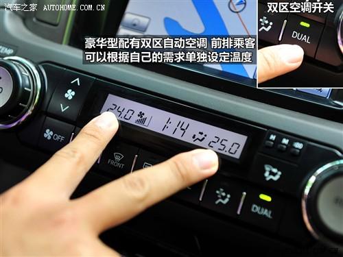 中間的液晶屏為觸摸式設計,相比那些旋鈕和搖桿操作更加直觀簡單,而其功能也很豐富,導航、藍牙電話,DVD播放等功能一應俱全。液晶屏下方的是空調控制區,普拉多采用雙區自動空調,主副駕駛可以分別調節自己需要的溫度。