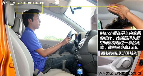 在March瑪馳的講解會中,廠家人員多次提到了它的空間。作為一款小型車,這個問題很可能會決定產品的競爭力,畢竟個兒頭擺在那,誰會更好的解讀空間利用率,誰就必然有優勢!通過親身體驗,瑪馳在這一項目中還是展示出了心得,比如在頭部空間方面。