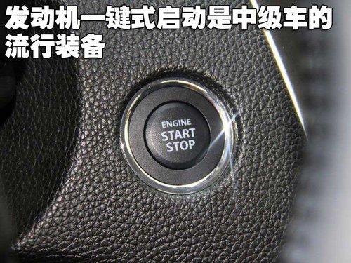 在以往點火鑰匙門的位置,一鍵式啟動按鈕映入眼簾,鍍鉻的裝飾非常的亮眼,這樣的裝備也是符合其中級車的定位訴求,并且這個裝備是流行趨勢所在。