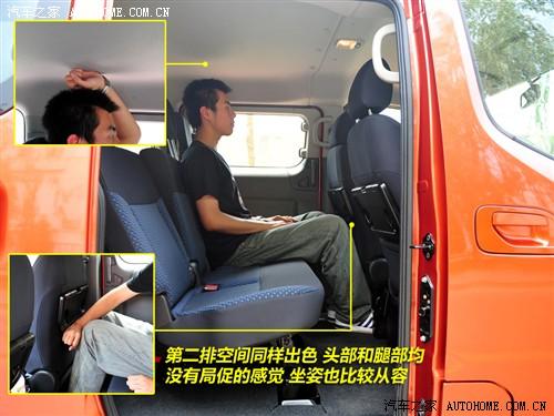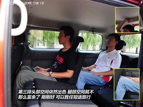 本車的體驗者身高為188cm,但坐在NV200的前兩排頭部仍然有一拳的余量,車身較高確實是廂式車的一大優(yōu)點。而且和之前介紹的兩款車型不同,NV200的第三排座椅可以乘坐一名成年男性,雖然也不寬裕但可以進(jìn)行短途的乘坐。