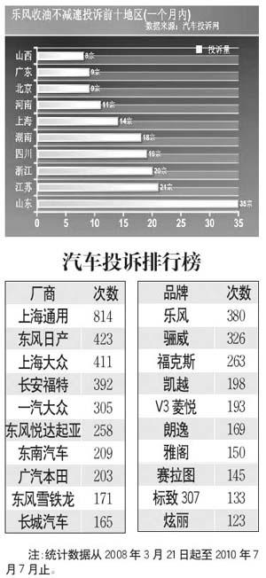 2010年4月6日,汽車投訴網接到一宗“通用樂風發動機收油不降速油耗大增”的投訴。4月12日,該類投訴明顯升溫,至18日晚22:30,在短短的一周時間里,僅汽車投訴網就受理了92宗類似的投訴,扣除兩宗重復投訴外,日均投訴量近13宗,創下了汽車投訴量單個品牌日均投訴量的記錄。到5月11日,參與集體投訴的車主已經超過200宗。