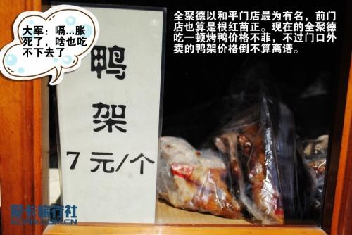 前門大街最著名的老北京小吃,應該就要算是“全聚德”了,對于這家中華著名老字號,大家早已聞名已久。不過考慮到自己肚子的承受能力,最后還是放棄了在全聚德大吃一頓的打算?谒鄣率讋摰膾鞝t烤鴨已久的瘦劉有些怏怏,不過這點遺憾很快就被“都一處”燒麥的誘惑打消的無影無蹤了。