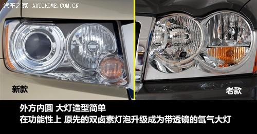 新款大切大燈外方內(nèi)圓,造型很簡單,與前臉的造型風(fēng)格貼切;在功能性上,由原先的雙鹵素?zé)襞萆墳楦鼜姷耐哥R氙氣大燈。