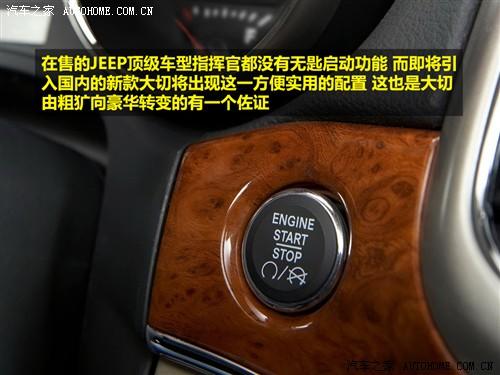 在轉向柱附近我們看到了無匙啟動按鈕,目前在售的JEEP頂級車型指揮官都沒有此功能,也許是為了追求JEEP一貫的越野復古風格,而現今的2011款大切將出現無匙啟動,確實是一個方便實用的配置。
