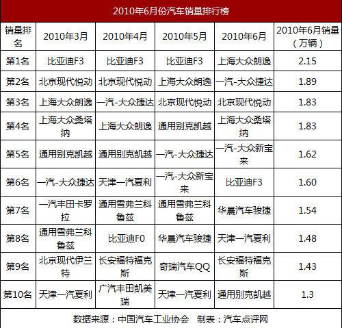 6月份的車市銷量堪稱風云突變,從銷量排行榜上來看,最吸引人眼球的變化還是比亞迪F3的滑落,從蟬聯多月第一名、到一落第6名,讓自主車型的支持者難免有幾分唏噓;而上月的第二名上海大眾朗逸,也自然上升一位,占據了6月銷量冠軍的寶座。