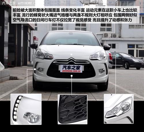DS3前臉被大面積整體包圍覆蓋,大嘴進氣格柵以蜂窩裝網格進行填充,類梯形的格柵與兩盞不規則的大燈相呼應,包圍外側形似空氣導流口的日間行車燈在拉寬視覺感受的同時增加了車輛的動感和張力,所以說DS3并不缺乏運動元素;唯一可惜的是氙氣大燈沒有出現。