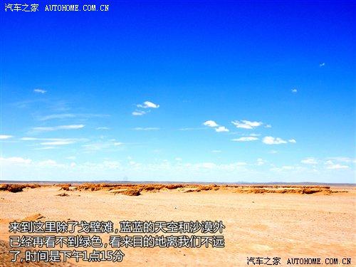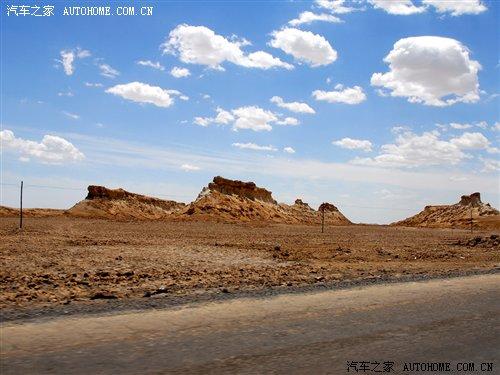 離開雅丹地貌后,我們的車隊(duì)繼續(xù)進(jìn)發(fā),大約兩個(gè)小時(shí)的車程后景色有了較大的變化,公路兩旁是被陽(yáng)光曬得閃閃發(fā)光的沙漠,還有就是藍(lán)藍(lán)的天空,此時(shí)已經(jīng)是下午的1點(diǎn)15分了,看來(lái)我們的目的地離我們不遠(yuǎn)了。