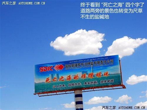 期待了數(shù)天的“死亡之!、羅布泊等字眼終于映入眼瞼,一個(gè)醒目的廣告牌就樹立在路旁。此時(shí)我們離羅布泊的距離也只有100多公里了,兩旁的景物像女人一樣,說(shuō)變就變了,沙漠已經(jīng)被一望無(wú)際的鹽堿地所取代。