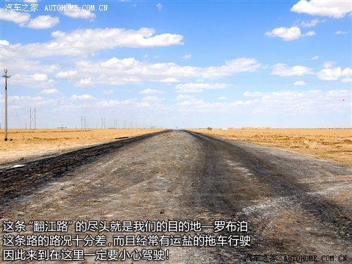 過(guò)了廣告牌以后,我們行駛的道路也發(fā)生了改變,省道已經(jīng)到了盡頭,我們駛進(jìn)了俗稱叫“翻江路”的柏油路面上。據(jù)當(dāng)?shù)氐能囍髡f(shuō),由于羅布泊是一個(gè)人煙稀少的地方,平時(shí)進(jìn)出的都是一些好幾十噸的運(yùn)鹽貨車,因此本來(lái)鋪好的柏油路已經(jīng)變得破爛不堪,故有“翻江路”之稱。