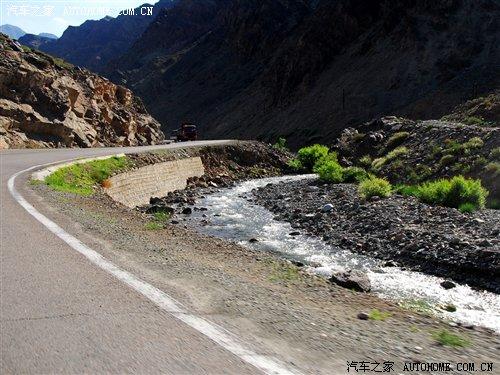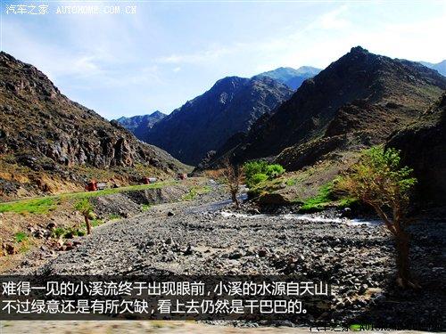 在山路行駛的前段時間令人十分枯燥,山路兩旁都是光禿禿的巖石山,十分欠缺綠意,干巴巴的!唯一可以吸引眼球的就是山路旁邊的小溪流,據當地車主介紹這小溪流的水源自天山,十分冰涼。