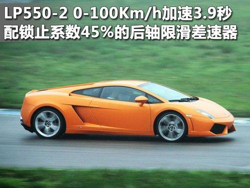 這款Gallardo的“心臟”經過優化,更加適合后輪驅動的特性,LP 550-2所搭載的5.2L V10發動機提供405千瓦(550馬力)的動力輸出,配合僅1380千克的凈重,為出色性能提供了可靠保障。 LP 550-2從靜止加速到100公里/小時(0-62英里/小時)僅需3.9秒,最高速度達到320公里/小時。