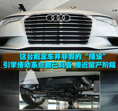 通常來展示在站臺上的概念車大都只是一個空殼子而已,出于好奇心我也趴到車底一看究竟。事實上這臺概念車已經被裝上了動力系統和懸架系統,加滿油、啟動引擎就可以開動。可惜的是現在它只能乖乖的趴在展廳里。動力系統上歐洲市場會搭載與全新A8或是Q7相同的柴油引擎以及汽油引擎。