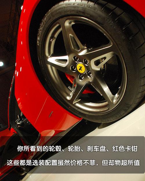 在法拉利的裝備表中很多東西都是選配的,例如外觀的顏色;輪胎、輪轂的尺寸和樣式甚至包括輪轂中央那個小罩子的顏色,以及內飾的顏色和用料。所以任何一位法拉利車主的法拉利理論上都是獨一無二的,當然這一切也需要車主去付出高昂的定制費。