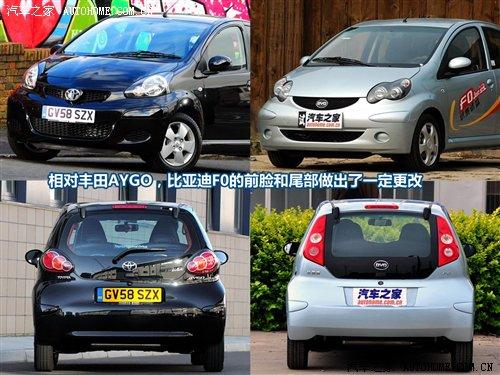 比亞迪F0是目前非常受歡迎的微型車之一,可愛靚麗的造型尤其吸引年輕人的目光,在整個微型車領域中的銷量也是名列前茅,當然這與它親民的售價也是分不開的,然而它俊俏的外表和可愛的內飾卻與豐田旗下的兩款車有著極度的相似。