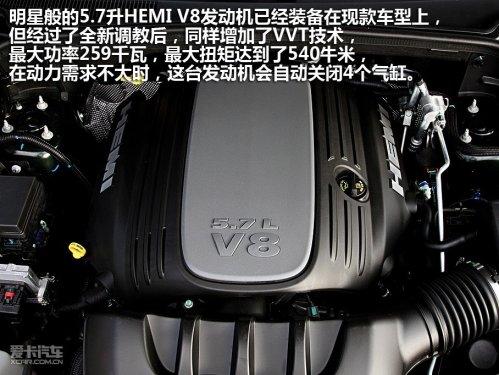 明星般的5.7升HEMI V8發(fā)動機(jī)已經(jīng)裝備在現(xiàn)款車型上,但經(jīng)過了全新調(diào)教后,同樣增加了VVT技術(shù),最大功率259千瓦,最大扭矩達(dá)到了540牛米,在動力需求不大時(shí),這臺發(fā)動機(jī)會自動關(guān)閉4個(gè)氣缸,從一臺8缸發(fā)動機(jī)變?yōu)?缸發(fā)動機(jī),從而節(jié)省更多的燃料。兩款5速自動變速器分別對應(yīng)兩臺強(qiáng)大的發(fā)動機(jī)。