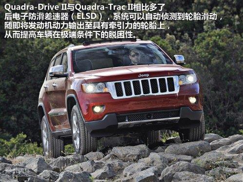 Jeep為新大切準備了兩套不同的四驅系統,升級后的Quadra-Trac II全時四驅系統在大部分時間中向所有車輪傳遞動力,在系統檢測到某個車輪需要更多牽引力時,通過接通離合器組,從而能將最多100%的動力分配至前軸或者后軸。