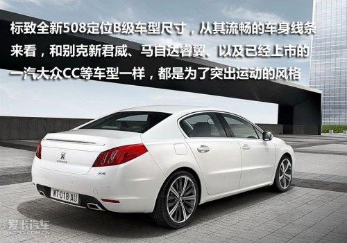 標致全新508定位B級車型尺寸,從其流暢的車身線條來看,和別克新君威、馬自達睿翼、以及已經上市的一汽大眾CC等車型一樣,都是為了突出運動的風格。其細節之處的設計也是可圈可點。