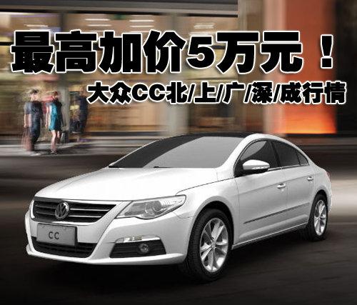 國產的大眾CC于不久前正式落戶一汽-大眾,搭載1.8TSI與2.0TSI的國產大眾CC售價區間為:25.28-29.98萬元,在價格方面給了我們不小的驚喜。剛上市不久的國產大眾CC受到了具有獨特品味的消費著追捧,那么目前市場的情況如何呢?我們選取了國內汽車消費比較時尚的北京、上海、廣州、深圳、成都5個城市進行了調查。目前,國產大眾CC在這5個城市最高加價達到了5萬元。