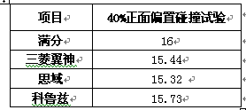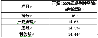 在40%正面偏置碰撞試驗中,由于車身側(cè)面和后面關(guān)鍵部位大量采用比高強(qiáng)度材料(高張力鋼板,相當(dāng)于普通鋼板4倍強(qiáng)度)更加堅固的超高強(qiáng)度材料(超高張力鋼板),三菱翼神碰在此項碰撞測試中獲得不俗成績,A、B柱均無形變,側(cè)門的防撞鋼梁異常明顯,前排假人坐姿端正,安全帶與側(cè)氣簾側(cè)氣囊對假人起到了明顯的保護(hù)作用,表現(xiàn)出色。值得一提的是,三菱翼神高操控性底盤表現(xiàn)搶眼,沒有像大多數(shù)偏置碰撞車輛那樣發(fā)生嚴(yán)重變形,源自EVO十代的技術(shù)平臺展現(xiàn)出優(yōu)良的穩(wěn)定性和高剛性特質(zhì)。