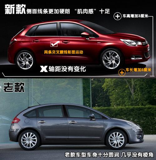 一般意義上來說,區(qū)別一款車型是不是小改款車型主要看是否只是改動了車身前后的造型。而全新的雪鐵龍C4的絕對可以稱得上新車,通過車身側(cè)面的對比我們可以清楚的看到,在C柱部分已經(jīng)進(jìn)行了重新設(shè)計(jì),而側(cè)面不對稱的交叉腰線在彰顯了個(gè)性的同時(shí)也提升了整車造型的質(zhì)感。