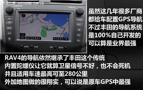 豐田的導航系統一直有著不錯的口碑,完全的自主研發使RAV4的導航系統有著信號穩定、地圖指示詳細等優點。此外在RAV4上消費者可以在2.0L車型上就擁有這項配置,相對較低的價格更容易被人接受。要知道CR-V的導航系統只出現在售價不低的頂配車型上。
