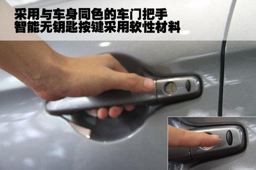 三菱ASX勁炫采用無鑰匙系統,車門上的門把手采用與車身同色設計,開啟并不需太大的力氣,非常輕便。另外,這款車的門把手上的無鑰匙開啟按鍵采用軟性材料,手感也比較舒服。