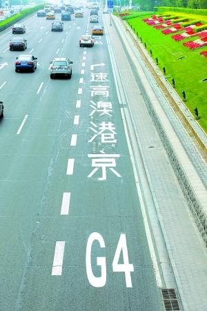 在廣安門及菜戶營地區,記者看到,通往京港澳高速的道路上,地標已經采用新的國家標準。司機遠遠望去,地上的提示順序與行車方向一致。但是如果按照車輛的行進方向,看到的字體順序卻符合我們平時的閱讀習慣,依次為“京、港、澳、高、速”。而在德勝門附近,京藏高速的地面提示標也同樣改為由近及遠的順序。
