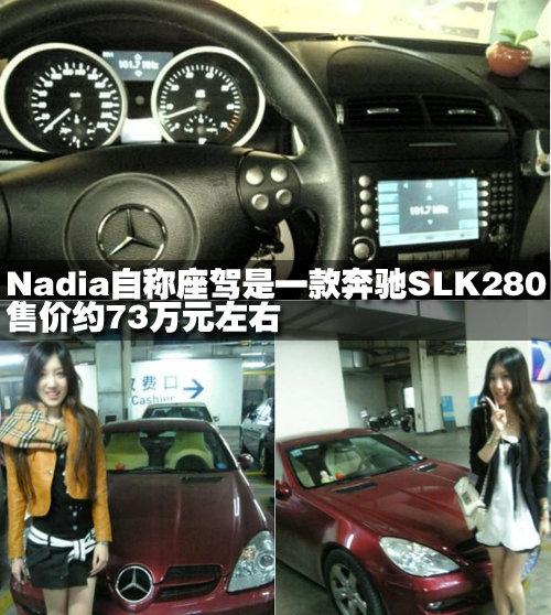 發(fā)帖人“fofo”自稱英文名字叫Nadia,卻并不透露中文姓名,Nadia的座駕是一款老款奔馳SLK280,搭載3.0升V6引擎,目前這款車型已經(jīng)停產(chǎn),當(dāng)時的售價在73萬元左右。Nadia還表示自己的爸爸開BMW 7系,媽媽開奧迪車型,家里還有一部公用的商務(wù)車。