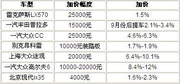 但是今年很奇怪,一邊是瘋狂降價,一邊部分車型的加價情況愈演愈烈,尤其在省外市場上,2010款路虎攬勝5.0車型的加價額度在18萬-20萬元,雷克薩斯GX460的加價額度為11萬,加價幅度幾乎占到了車價的10%以上,據說最高一個城市的加價比例為25%。