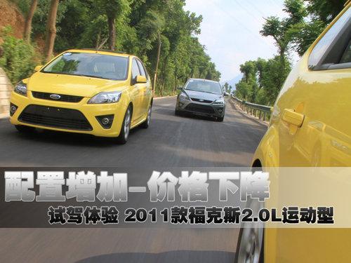 2011款?怂古c老款車型相比并沒有特別大的變化,主要變化體現在配置方面。此次試駕的這款福克斯2.0L運動型是整個?怂瓜盗兄惺蹆r最高的車型,更運動的賣相以及獨有的車身顏色以及內飾配置讓這款車型成為了國產A級家轎中高端運動型轎車的代表。