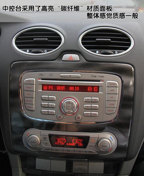 最明顯的變化體現在中控臺的面板上,2011款福克斯兩廂運動型中控臺采用高亮“碳纖維質”質感材質,總體上感覺并不運動也并沒有高檔的感覺,與我們印象中的“仿碳纖維”類面板也有較大的差距。
