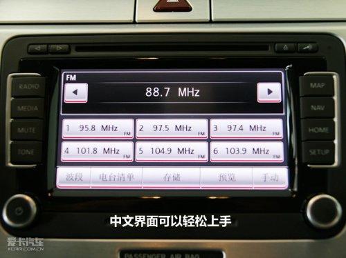 在中控部分PASSAT旅行版裝備了新一代娛樂導航系統和自動恒溫空調。這款娛樂導航系統與國產高爾夫6高配車型稍有不同,外觀一致但高爾夫6的娛樂導航系統在功能上進行了本土化調整。一體機擁有30G的硬盤容量,DVD播放、導航以及SD卡讀取,界面為全中文,可以非常輕松的上手使用。