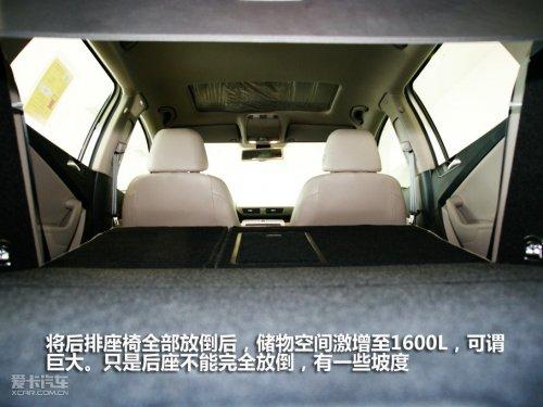 后排座椅的變化也十分豐富,既可以4\6分折,也能全部放倒。但遺憾的是后排座椅并不能全部放平,與后備箱還是有一個小小的坡度。而即使這樣,在放倒后排座椅后,可以令整個后備箱的容積激增至1600L!這可以說是一個非!翱植馈钡臄底,超過了很多大型SUV儲物極限。
