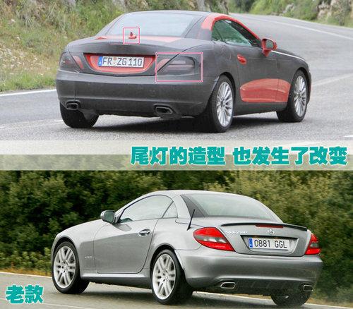 與目前車型相比,新款車型將配置更大的側后視鏡,并且其位置也更靠后,位于車門之上。該車在外觀上最大的變化就是其尾部傾斜的車尾設計,其是受到了F1車型風格的啟發而設計出來的。整個車身外觀十分富有動態性。新款奔馳SLK跑車自重減少了90公斤,同時增加了內部可利用的空間。這樣的設計必將提升新款奔馳SLK跑車的實用性,既可去高爾夫球場打球也可在周末度假旅行。